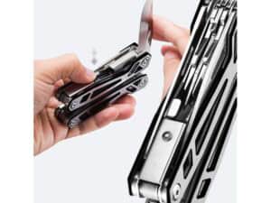 Multifunkčné vreckové kliešte B/BURY 21 v 1, s 21 funkciami nožom, puzdrom na skrutkovač, skladacími kombinovanými kliešťami z nehrdzavejúcej ocele 420 s bezpečnostným uzamykaním sú multifunkčným nástrojom na prežitie, kempovanie, rybolov a opravy v domácnosti. V sade sa nachádza aj mierka, rezačka lana, otvárač fliaš, konzev, pílka, sady 8 bitov a ďalšie. Je vyrobený z kalenej nehrdzavejúcej ocele 3CR13, tepelne upravenej pre mimoriadne vysokú odolnosť. Jeho odolný a pevný materiál účinne zabraňuje korózii a zaisťuje dlhodobú životnosť. Pohodlná 3D opracovaná textúra rukoväte poskytuje spoľahlivý protišmykový úchop. Dodáva sa s odolným puzdrom, ktoré sa dá pripevniť na opasok.