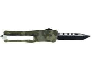 Automatický vyskakovací nôž FOXTER® Digit s dĺžkou 20,8 cm vo farbe digital green s otváraním na prednej strane. Poistku má na boku rukoväte, ktorej uvoľnením je možné zatlačiť na otvárací mechanizmus a čepeľ vyskočí. Ľahko sa otvára a zatvára jednou rukou. Čepeľ dĺžky 8 cm je ostrá na jednej strane. Rukoväť je vyrobená z kvalitného pevného hliníka. Nôž má aj bodec na rozbíjanie skla a klip na pripevnenie na opasok. Súčasťou balenia je aj puzdro s nastaviteľným prevlečením na opasok a s bezpečnostnou prackou.