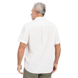 Enzymaticky opraná a neuveriteľne vzdušná pánska košeľa EVANS je ušitá zo 100 % bavlny v pevnej plátnovej väzbe. Náprsné vrecká s pätkami jej prepožičiavajú expedičný nádych, rovnako tak aj tlmené prírodné odtiene. Krátky rukáv zdobí výšivka značky tovaru.