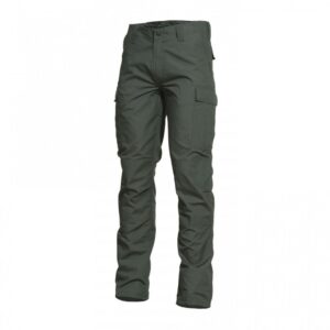 Ako sme zvyknutí, na nohaviciach BDU nesmú chýbať zdvojené kolená a sedacia časť. Konce nohavíc je možné stiahnuť pomocou plochých šnúrok. Nezvyčajným a zároveň výborným prvkom na nohaviciach sú trojité švy na miestach, kde sú najviac namáhané. Menej namáhané časti majú dvojité švy.