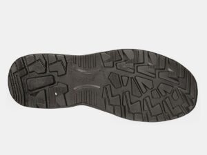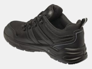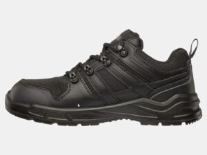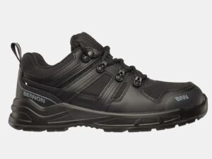 Taktická pracovná poltopánka čiernej farby so sivým logom BNN na jazyku, špici, na strane členku.
