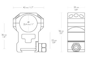 TACTICAL RING MOUNTS 1” 2 PIECE WEAVER EXTRA HIGH (24113) 2 dielna oceľová montáž 25,4mm Extra Vysoká(Weaver). Šesťhranný maticový model. Vlastnosti: Trojité Torx skrutky, ktoré udržia Váš puškohľad pevne na svojom mieste. Matný čierny eloxovaný vysoko kvalitný hliník. Vnútorná výstelka zabraňuje značeniu a poškodeniu. Prevedenie – Dva kusy. Veľkosť otvoru (Priemer) – 25,4mm / 1”. Výška – Extra High (Extra Vysoká). Základňa / kolajnička – Weaver. Uchytenie (základňa / vrchná časť) – Dvojité / Trojité Torx skrutky. Vnútorná páska – Áno. Vysúvací dorazový kolík – Áno. Výška – 56mm. Váha – 154g. Kompatibilná s: 22153 HAWKE Picatinny Ring Caps (1", triple screw).