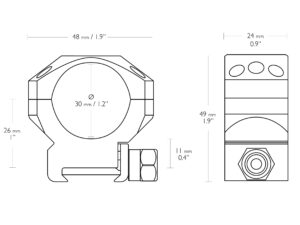 TACTICAL RING MOUNTS 30mm 2 PIECE WEAVER MEDIUM (24116) 2 dielna oceľová montáž 30mm Stredná (Weaver). Šesťhranný maticový model. Vlastnosti: Trojité Torx skrutky, ktoré udržia Váš puškohľad pevne na svojom mieste. Matný čierny eloxovaný vysoko kvalitný hliník. Vnútorná výstelka zabraňuje značeniu a poškodeniu. Prevedenie – Dva kusy. Veľkosť otvoru (Priemer) – 30mm. Výška – Medium (Stredná). Základňa / kolajnička – Weaver. Uchytenie (základňa / vrchná časť) – Dvojité / Trojité Torx skrutky. Vnútorná páska – Áno. Vysúvací dorazový kolík – Áno. Výška – 49mm. Váha – 143g. Kompatibilná s: 22154 HAWKE Picatinny Ring Caps (30mm, triple screw).