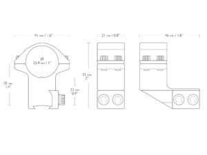 25mm REACH FORWARD 9-11mm/2pc/ 1" HIGH 1” 2 PIECE 9-11mm HIGH (22120) 2 dielna hliníková montáž 25mm vysunutá Vysoká s priemerom 25,4mm (9-11mm / 3/8”). Vlastnosti: 25mm vysunutá konfikurácia. Vysoká (High) vhodná pre puškohľady s väčším objektívom. Dvojité šesťhranné skrutky, ktoré udržia Váš puškohľad pevne na svojom mieste. Vybavená dorazovým kolíkom pre spätný ráz. Obojstranné rybinové svorky, ktoré sa hodia 9-11mm alebo 3/8” základňu. Vnútorná páska zabraňuje poškrabaniu a poškodeniu puškohľadu. Kvalitný eloxovaný hliník v matnej čiernej farbe. Prevedenie – Dva kusy. Veľkosť otvoru (Priemer) – 25,4mm / 1”. Výška – Vysoká (High). Základňa / kolajnička – 9-11mm / 3/8”. Uchytenie (základňa a vrchná časť) – Dvojité šesťhranné skrutky. Vnútorná páska – Áno. Vysúvací dorazový kolík – Áno. Výška – 51mm. Váha – 85g. Montáž je precízne skonštruovaná z vysoko kvalitného hliníka so zaoblenými hranami aby nedošlo k poškodeniu puškohľadu. Kompatibilná s: 22150 HAWKE Picatinny Ring Caps (1", Double Screw). 22160 Mount Inserts 1”.