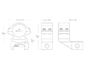 25mm REACH FORWARD WEAVER /2pcs/1” HIGH 1” 2 PIECE WEAVER HIGH (22124) 2 dielna hliníková montáž 25mm vysunutá Vysoká s priemerom 25,4mm (Weaver). Vlastnosti: 25mm vysunutá konfikurácia. Vysoká (High) vhodná pre puškohľady s väčším objektívom. Dvojité šesťhranné skrutky, ktoré udržia Váš puškohľad pevne na svojom mieste. Weaver modely sú vybavené priečnou skrutkou pre bezpečnejšie uchytenie. Vnútorná páska zabraňuje poškrabaniu a poškodeniu puškohľadu. Kvalitný eloxovaný hliník v matnej čiernej farbe. Prevedenie – Dva kusy. Veľkosť otvoru (Priemer) – 25,4mm / 1”. Výška – Vysoká (High). Základňa / kolajnička – Weaver. Uchytenie (základňa a vrchná časť) – Dvojité šesťhranné skrutky. Vnútorná páska – Áno. Vysúvací dorazový kolík – Nie. Výška – 50mm. Váha – 71g. Montáž je precízne skonštruovaná z vysoko kvalitného hliníka so zaoblenými hranami aby nedošlo k poškodeniu puškohľadu. Kompatibilná s: 22150 HAWKE Picatinny Ring Caps (1", Double Screw). 22160 Mount Inserts 1”.