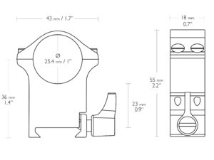 PROFESSIONAL STEEL RING MOUNTS 1” 2 PIECE WEAVER EXTRA HIGH (23103) 2 dielna oceľová montáž 25,4mm Extra Vysoká (Weaver). Šesťhranný maticový model a Rýchlo upínacia páčka. Vlastnosti: Dvojité Torx skrutky, ktoré udržia Váš puškohľad pevne na svojom mieste. Navrhnuté pre uchytenie na Weaver/Picatiny koľajničku. Reverzibilná Weaver Tyčka pre nekonečné montážne Polohy. Vnútorná páska zabraňuje poškrabaniu a poškodeniu puškohľadu. Dodávaná Rýchlo upínacia páčka. Pevná oceľová konštrukcia pre vynikajúcu pevnosť. Prevedenie – Dva kusy. Veľkosť otvoru (Priemer) – 25,4mm / 1”. Výška – Extra High (Extra Vysoká). Základňa / kolajnička – Weaver. Uchytenie (základňa a vrchná časť) – Dvojité Torx skrutky. Vnútorná páska – Áno. Vysúvací dorazový kolík – Nie. Výška – 55mm. Váha – 310g.
