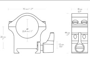 PROFESSIONAL STEEL RING MOUNTS 1” 2 PIECE WEAVER MEDIUM (23101) 2 dielna oceľová montáž 25,4mm Stredná (Weaver). Šesťhranný maticový model a Rýchlo upínacia páčka. Vlastnosti: Dvojité Torx skrutky, ktoré udržia Váš puškohľad pevne na svojom mieste. Navrhnuté pre uchytenie na Weaver/Picatiny koľajničku. Reverzibilná Weaver Tyčka pre nekonečné montážne Polohy. Vnútorná páska zabraňuje poškrabaniu a poškodeniu puškohľadu. Dodávaná Rýchlo upínacia páčka. Pevná oceľová konštrukcia pre vynikajúcu pevnosť. Prevedenie – Dva kusy. Veľkosť otvoru (Priemer) – 25,4mm / 1”. Výška – Medium (Stredná). Základňa / kolajnička – Weaver. Uchytenie (základňa a vrchná časť) – Dvojité Torx skrutky. Vnútorná páska – Áno. Vysúvací dorazový kolík – Nie. Výška – 44mm. Váha – 217g.