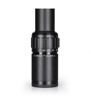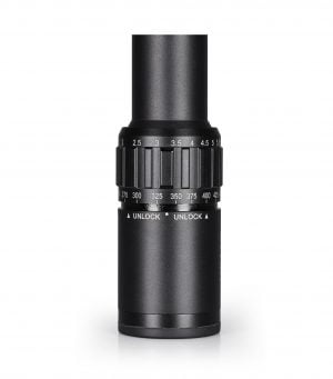 Nastaviteľný uzamykateľný zoom krúžok pre použitie náboja s rýchlosťou od 250fps do 450fps (feet per second) (od 76,12m/s do 137,14 m/s).