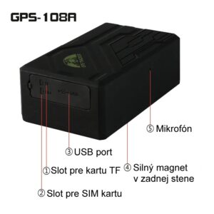 GPS Tracker GPS-108A zariadenie vhodné na sledovanie vozidiel so silným magnetom v zadnej stene na upevnenie k oceľovej konštrukcii. Podporujte sledovanie v reálnom čase pomocou mobilných aplikácií a webovej platformy a presnú adresu si môžete skontrolovať aj pomocou mobilného telefónu. Zariadenie sa automaticky zapne po vložení SIM karty. Pri prvom zapnutí vyneste zariadenie do otvoreného vonkajšieho priestoru na 10 až 40 sekúnd pre vyhľadanie GSM a GPS signálu.