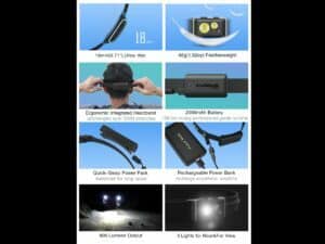 Súčasťou balenia je: Čelovka HR1, Popruh na hlavu, Puzdro na batérie, 3x AAA batérie, Klip na napájací kábel.