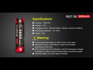 Klarus LiR 18650 3,6V 12,96Wh 3600mAh nabíjateľná batéria (Klarus 18GT-36)