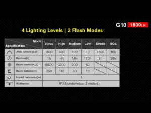 G10 1800lm (Kompaktné a Výkonné svietidlo, Inteligentné a Nabíjateľné).