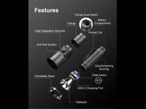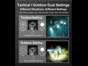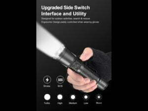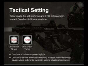 ◇ Taktické nastavenie: Klasické ovládanie Klarus XT série, Jedným dotykom Turbo (hlavný spínač), Jedným dotykom Strobo (režimový spínač), Bočný spínač pre jednoduchú a plnú obsluhu v akomkoľvek prostredí alebo situácii.