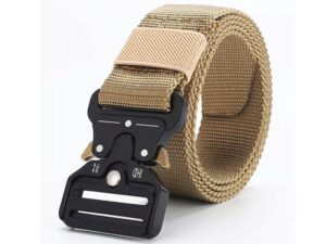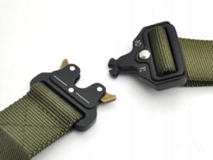 Odolný opasok ideálny pre nohavice na všetky typy expedícií a kempingu. Na opasok je možné bezpečne naložiť vybavenie, napríklad multifunkčné náradie, baterku, puzdro na zbraň či iné. Opasok je vybavený prackou QR (Quick-Relase), ktorá zaisťuje rýchle zapnutie alebo stiahnutie opasku v prípade núdze (rozopne a zapne sa jedným kliknutím). Kovová pracka má uzamykací systém, ktorý chráni pred náhodným otvorením. Opasok je bez dier a pracka umožňuje plynulé nastavenie veľkosti opasku do 119 cm. Vďaka tomu sa dá presne prispôsobiť obvodu pása užívateľa. V prípade potreby je možné popruh skrátiť odrezaním časti pásky.