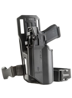 Puzdro určené pre zbraň Glock 19, 19X, 17, 45 a pod. so svetlom (TLR7, Tru Point, OLIGHT BALDR Mini, BALDDR Pro R, PL-PRO VALKYRIE) alebo bez. Použitý materiál Cordura, suchý zips a vystužený polymér. Puzdrá sú pohodlné na každodenné použitie. Fobus LE2 MEX2 T je profesionálne puzdro s poistkou proti vytiahnutiu zbrane z puzdra. Poistka s rotačným krytom sa ovláda palcom ruky, ktorou sa vyťahuje zbraň z puzdra.