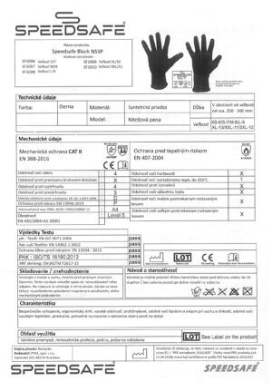 Všeobecné vlastnosti: Nitrilová penová vrstva, čierna. Rukavica je prísne neutrálna a vybavená iba vnútorným štítkom.