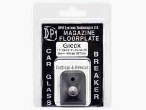 DPM pätka zásobníka s rozbíjačom skla pre Glock 17-19-22 All Gens. Zásobník môžete použiť ako nástroj na rozbíjanie automobilových skiel bez toho, aby ste museli zapájať a nosiť akékoľvek ďalšie špeciálne vybavenie. Aj samotnú pištoľ so zásobníkom s doskou DPM (so zabudovaným tvrdokovovým hrotom), možno použiť ako kladivový nástroj na rozbíjanie sklenených tabúľ bez narušenia celkovej funkcie pištole.