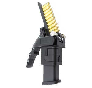 The Mag Loader je nástroj na rýchle a jednoduché nabíjanie a vybíjanie zásobníkov pištolí. Je vyrobený z ľahkého a odolného polyméru, ktorý zaisťuje dlhú životnosť a pohodlné používanie. Jeho univerzálny dizajn je kompatibilný s väčšinou zásobníkov pre krátke zbrane kalibru 9 mm a .40 S&W.