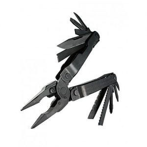 Leatherman SUPER TOOL 300 BLACK je synonymom naozaj riadneho Multitoolu pre skutočných Fachmanov. V 272 gramoch poctivej nerezovej ocele sa skrýva nadupaná výbava: multifunkčné kliešte vrátane cvakačiek oceľových laniek a tvrdých drôtov s vymeniteľnými čepieľkami, dva nože z kvalitnej ocele 420HC, pílka, šidlo, pilník na drevo i na kov, sada otváračov a štvorica skrutkovačov. Dvadsaťdvaceticentimetrové pravítko na vonkajších stranách rukoväte je už len čerešničkou na torte. Všetky nástroje sú vybavené poistkami proti náhodnému zatvoreniu, celú túto mobilnú dielňu si potom môžete pripnúť k batohu pomocou krúžku na karabínu, či ju nosiť v koženom alebo nylonovom puzdre na opasku. K dostaniu je v tradičnej nerezovej, alebo čiernej verzii.