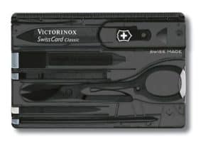 Victorinox SwissCard Onyx vás zaujme rôznymi dômyselnými funkciami. Imitácia platobnej karty je vybavená týmito funkciami: pilník na nechty na konci so skrutkovačom, špáradlo, pinzeta, nerezový špendlík, nožničky, guľôčkové pero, nôž na otváranie listov (čepeľ), pravítko (cm) a pravítko (palce).